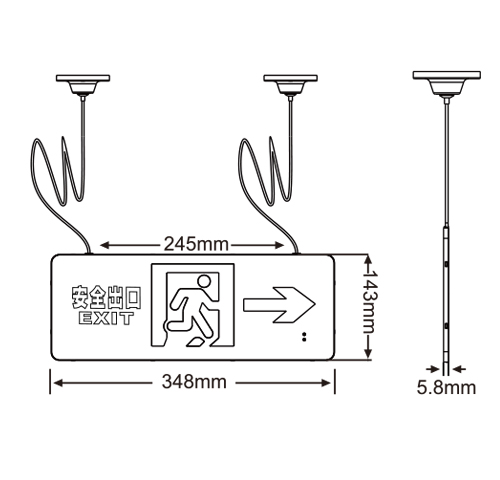 敏华超薄拉丝铝双面标志灯应急双面标志灯M6221-A(M-BLJC-2LREⅠ1WZLJ)/M6222-C(M-BLJC-2LROEⅠ1WZLK)集电集控0.58cm双面铝材吊线式标志灯