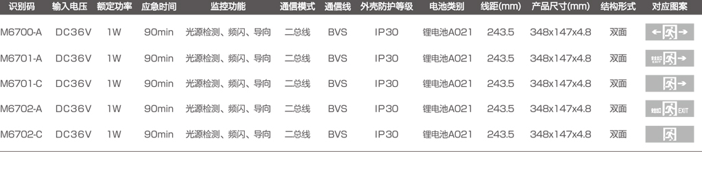 敏华自电集控双面吊线超薄不锈钢标志灯应急照明疏散指示灯M6700-A