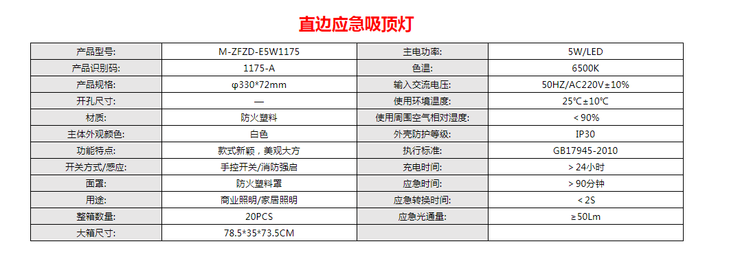 直边应急吸顶灯